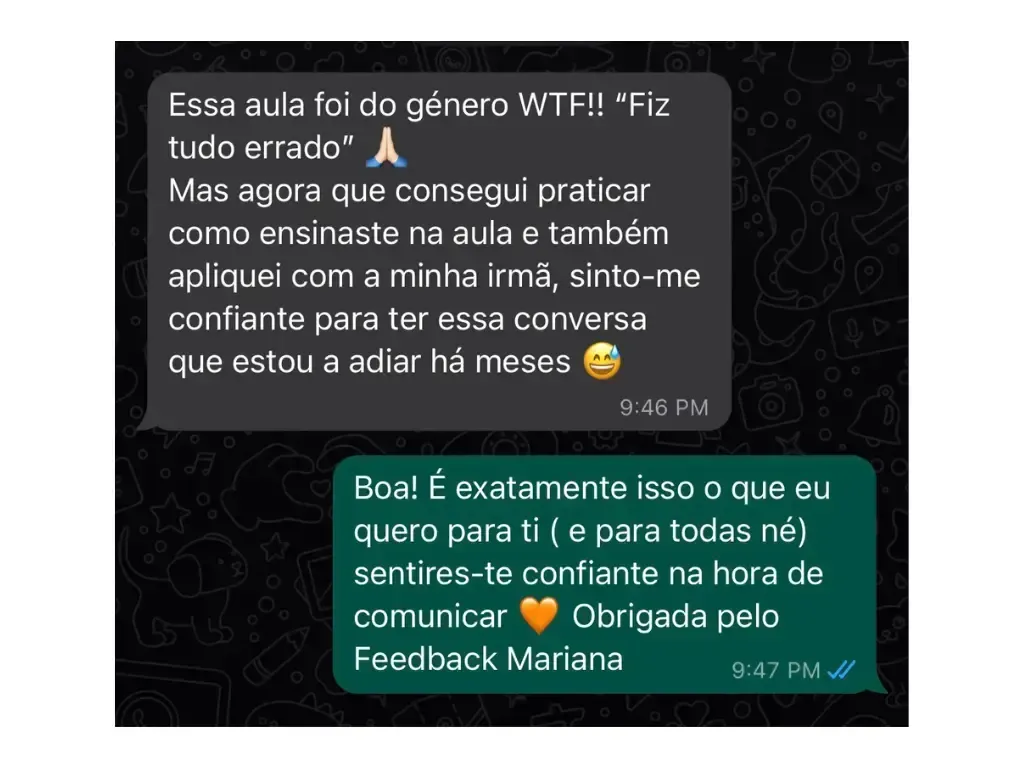 Enquanto isso, mantém-te atenta: clicando no botão abaixo para entrar no nosso grupo de WhatsApp e vais continuar a receber conteúdos gratuitos e de muito enriquecimento emocional, preparados para te ajudar a transformar a forma como te relacionas contigo e com quem amas.
